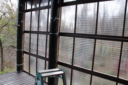 11月に入り、すでに紅葉は終盤を迎えていた。 ![]() 最初に、基礎部分の雪囲い。 ![]() なんだか、いい感じ・・・ ![]() 寸法どおりにはまっていく。 ![]() 高所は脚立を使って・・・ ![]() テラス内も明るくてgood!! ![]() これでいつ雪が降っても大丈夫・・・ |